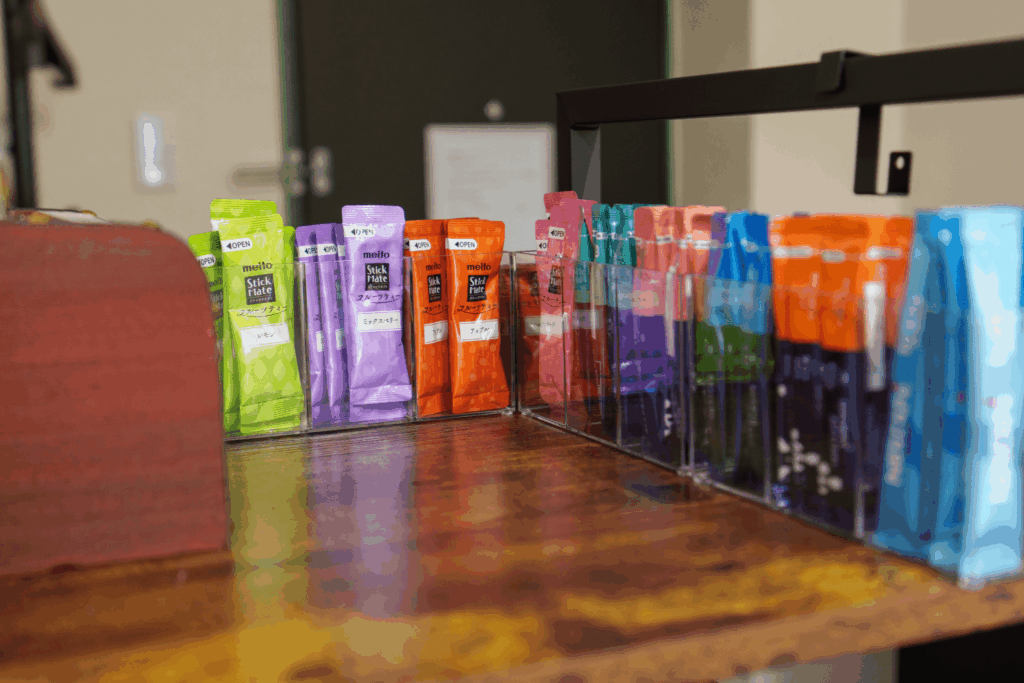 飲み物は1杯ずつの都度払い(50円/杯)、または飲み放題(300円/人)をご利用いただけます。